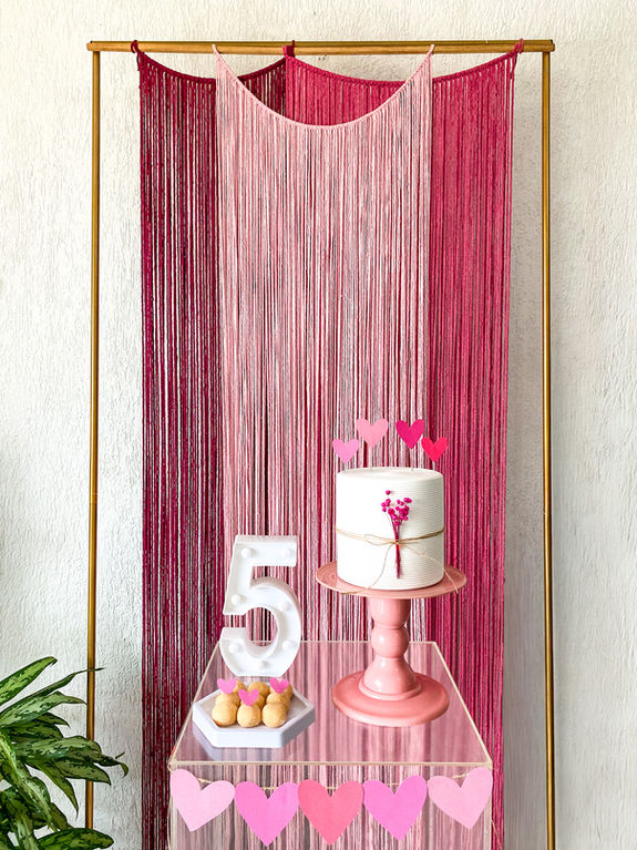 Composição alegre, delicada e lúdica em diferentes tons de rosa. Ideal para aniversários, chás e comemorações modernas cheias de charme!
